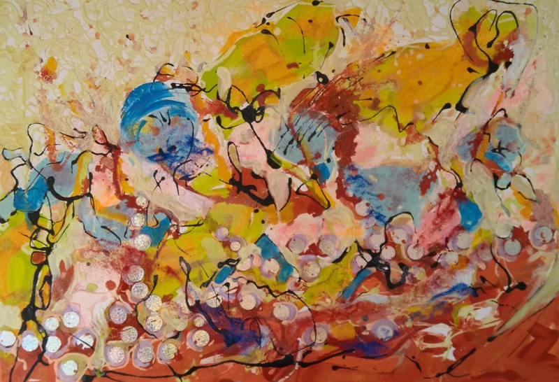 Sabah’s approach treats each painting as a living arrangement of movement, rhythm, and balance. Just as people organise their everyday lives through patterns and choices, her paintings reflect a natural ordering of visual language. The result is a body of work that feels open, sincere, and grounded in personal experience.